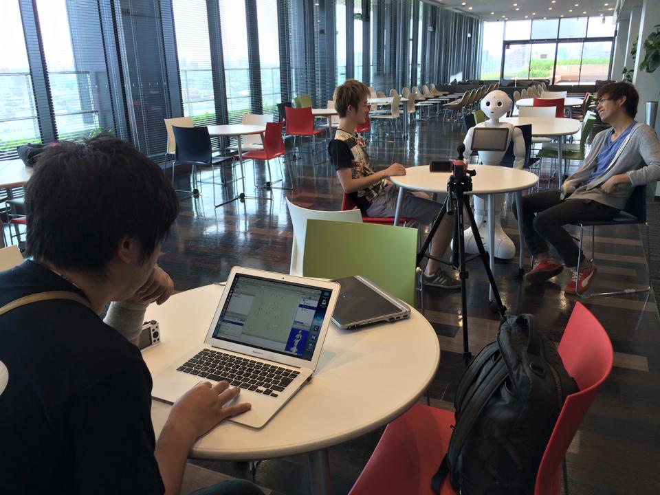 最終日の土曜日は、オープニングの映像を撮影するのに、伊藤さん、岩見君、桃井君と一緒に活動をしました。pepperが明治大学にきて、本授業に参加することになったストーリーをつくりました。こちらは早めに編集してアップしたいと思います。