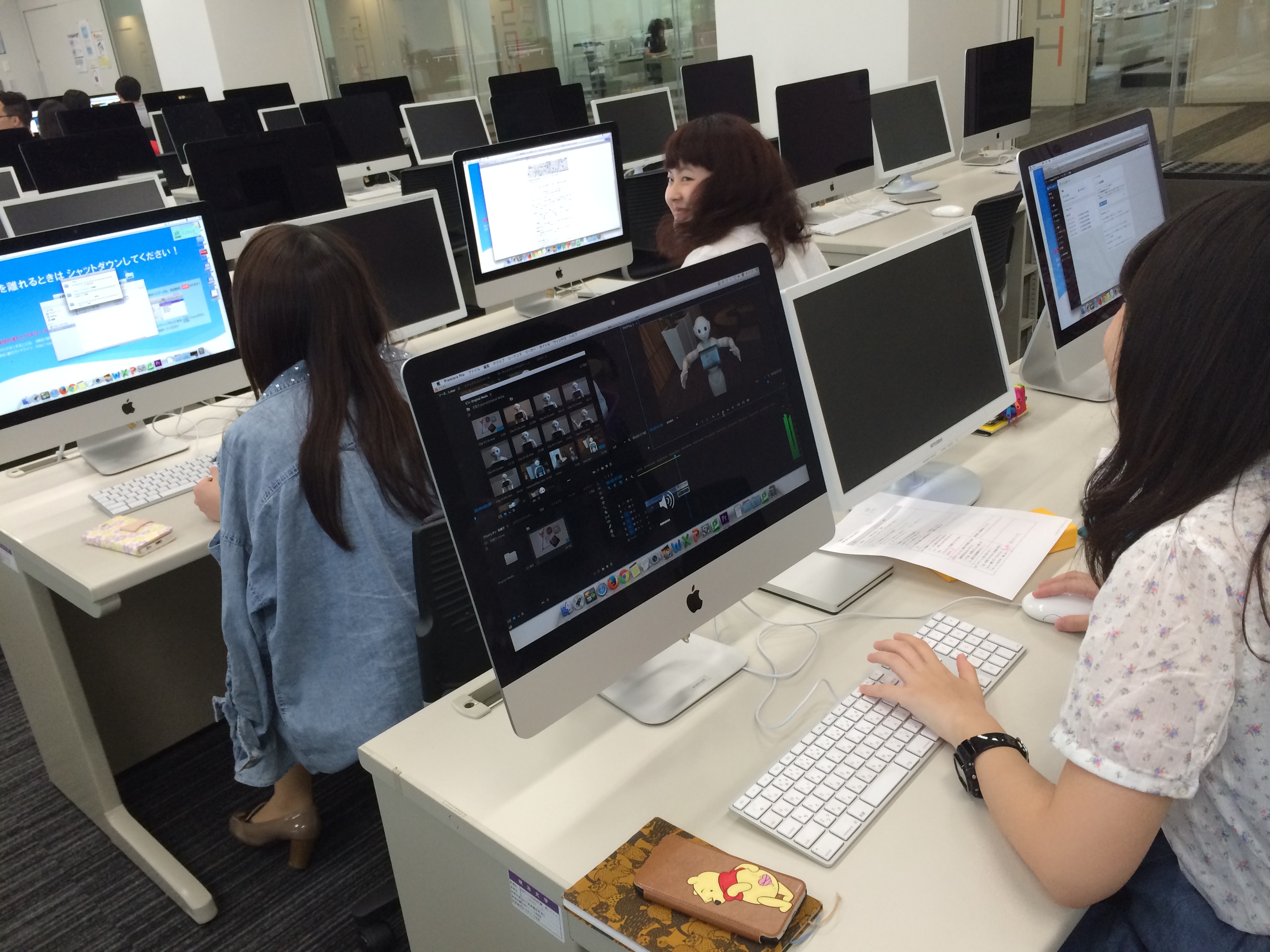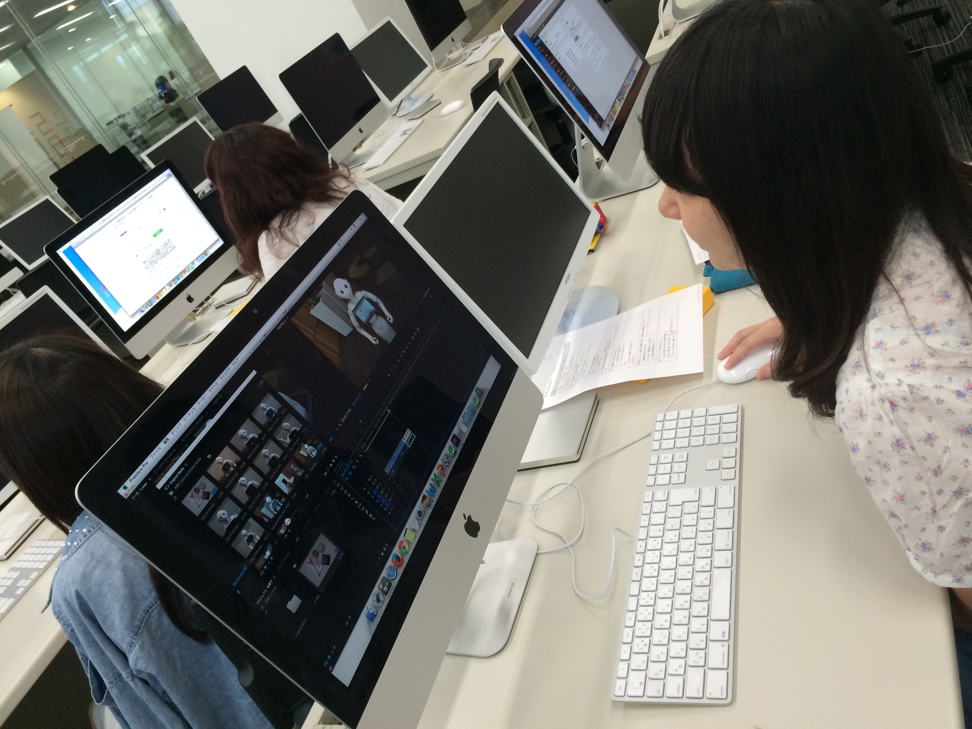 先週(6/18)の授業でMacのPremereの使い方を学び、ほとんどの人が初挑戦でした。私たちも初心者だったために、お試しオープニング動画作成に必死でした。
