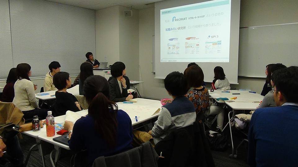 昨日の授業では、リクルートキャリアの江田さん@就職みらい研究所に、授業に来ていただき、講師として未来のキャリアについて考えるというワークショップをしていただきました。